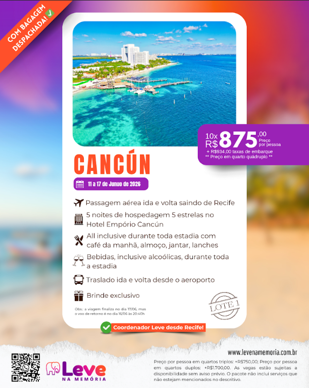 - Pacotes Disponíveissábado29/08/2026quarta-feira02/09/2026R$3.119Disponível