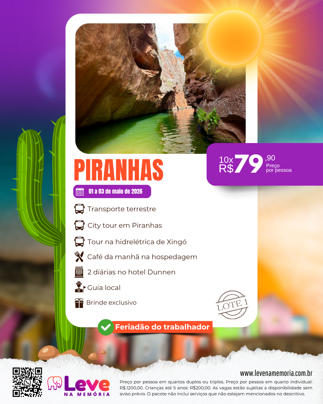 • Ingressos opcionais a serem pagos diretamente lá.