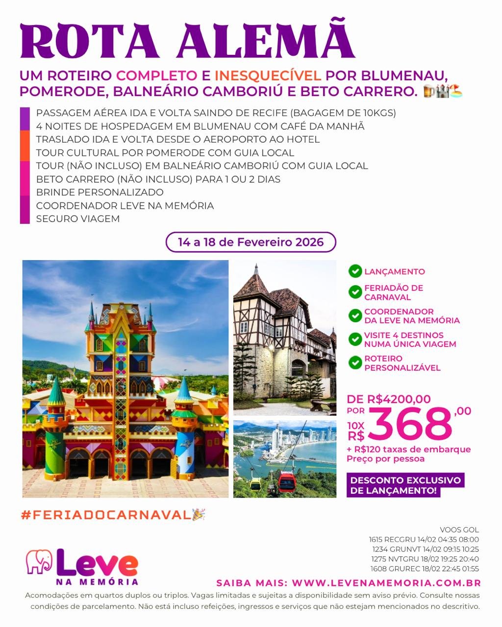 - Pacotes Disponíveissábado14/02/2026quarta-feira18/02/2026R$4.200R$3.800R$400 OffDisponível